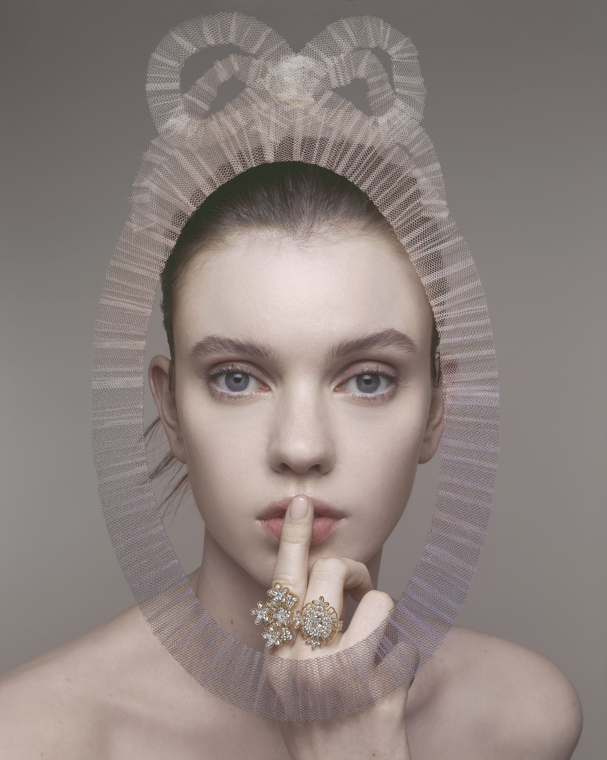 MODELLA: ALICE MCGRATH | MAKE-UP ARTIST: CHRISTINE CORBEL | HAIR STYLIST: OLIVIER SCHAWALDER | SET DESIGNER: LILLY MARTHE EBENER | FIOCCHI, ACCESSORI, MASCHERE: STEPHEN JONES